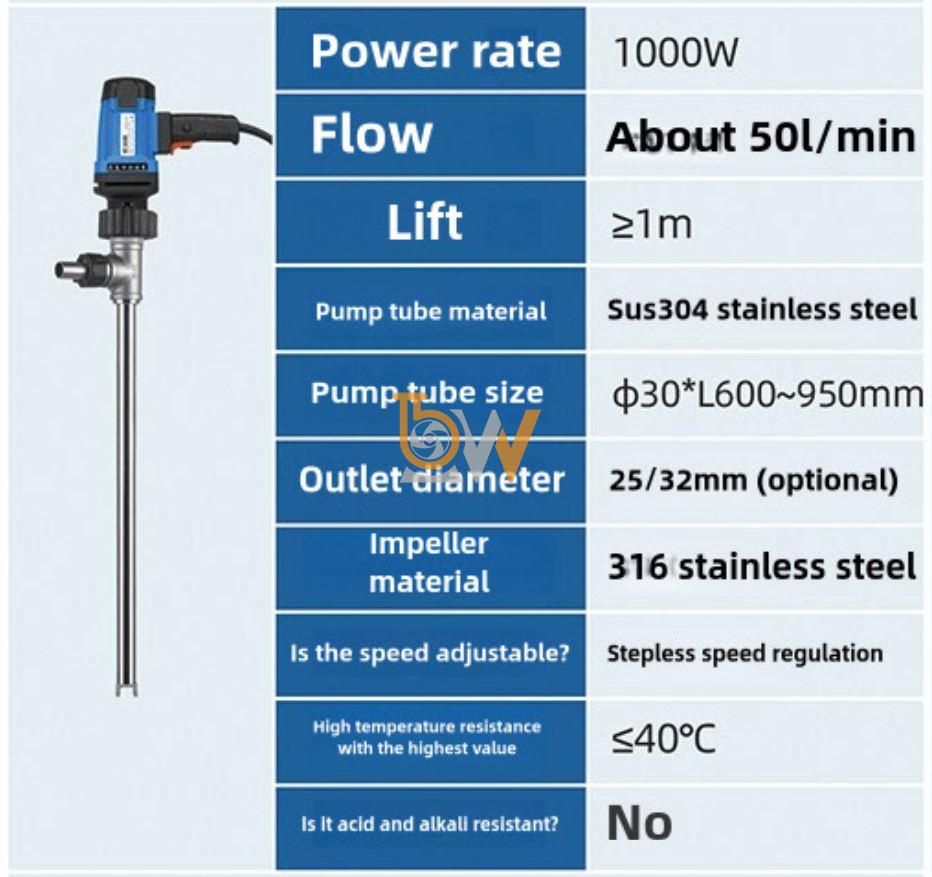 Chỉ sử dụng Bơm thùng phuy inox chịu nhiệt JDT-1300W-G260 để bơm các loại chất lỏng phù hợp với vật liệu và điều kiện làm việc của bơm.