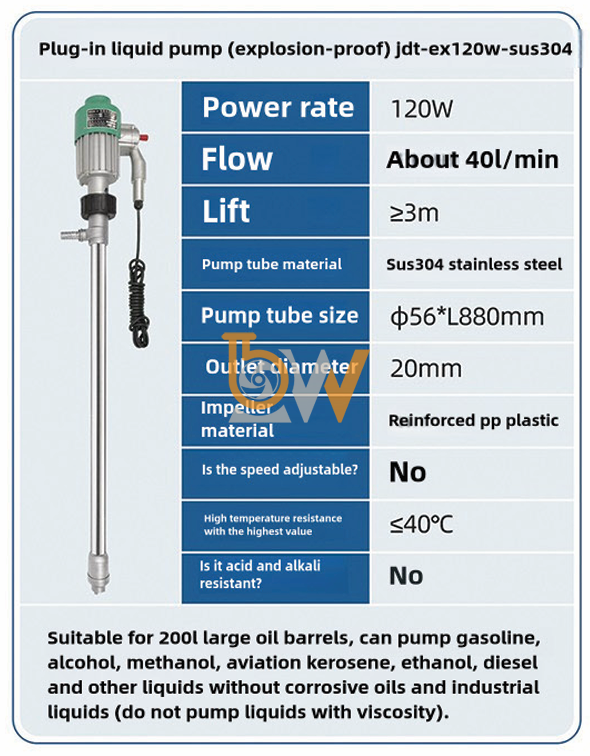 Đánh giá ưu điểm vượt trội của inox 304 trên Bơm chất lỏng cắm điện chống cháy nổ JDT-EX120W-SUS304