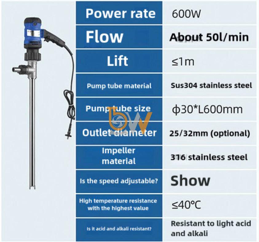 Bơm thùng phuy ống inox SUS304 JDT-600W là lựa chọn lý tưởng cho các doanh nghiệp trong ngành công nghiệp hiện đại.